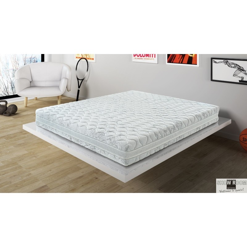 Plus del materasso in Aquacell Levanto - Strato di comfort in Aquacell Airflow, speciale imbottitura con cellule aperte ad alta trasmittanza (sui due lati della lastra): contatto morbido e fresco, ideale e perfetto per tutte le persone; Design strutturale degli strati interni della lastra ad altissima efficienza ergonomica ideale per tutte le persone. Portanza: B High Comfort (ideale per tutte le persone).