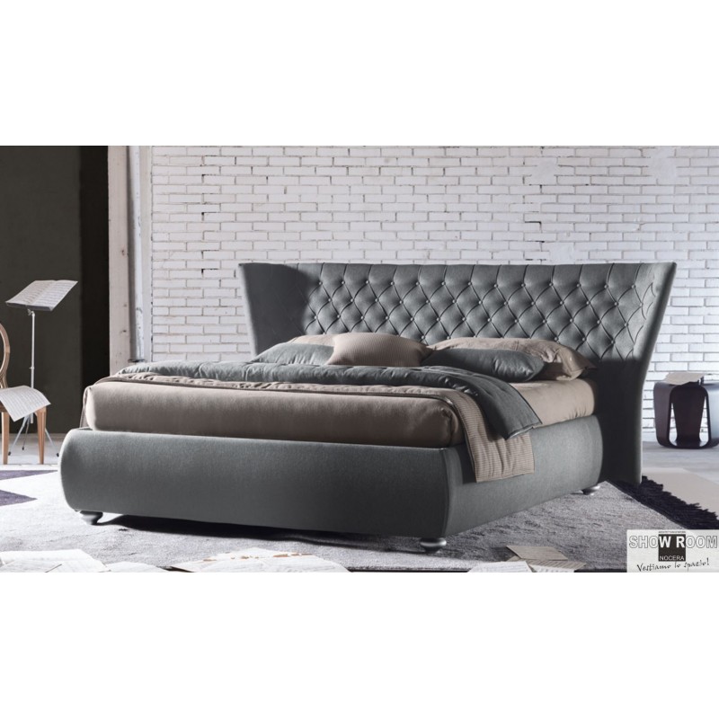 Letto Giselle disponibile in fascia alta e bassa con vano contenitore, per materasso L 80/120/160/180, testata imbottita rivestita in tessuto non sfoderabile, giroletto sfoderabile.