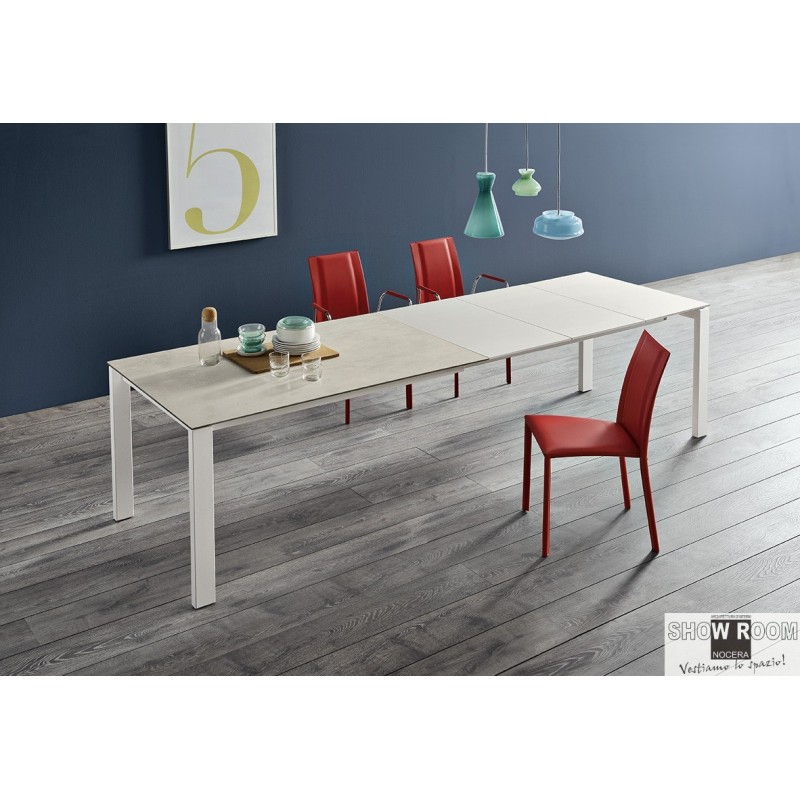 Tavolo allungabile con struttura in alluminio o legno, piano in impiallacciato, cristallo, cristallo anigraffio o cristalceramica. Disponibile in diverse misure.